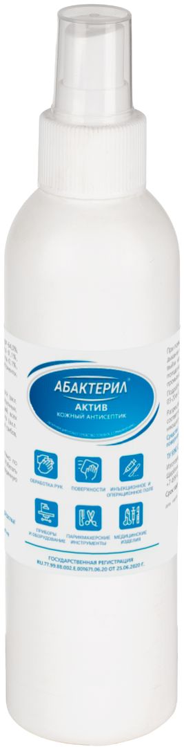 Абактерил-Актив - дез. средство и кожный антисептик, обладающий пролонгированным антимикробным действием в течение 3 часов.