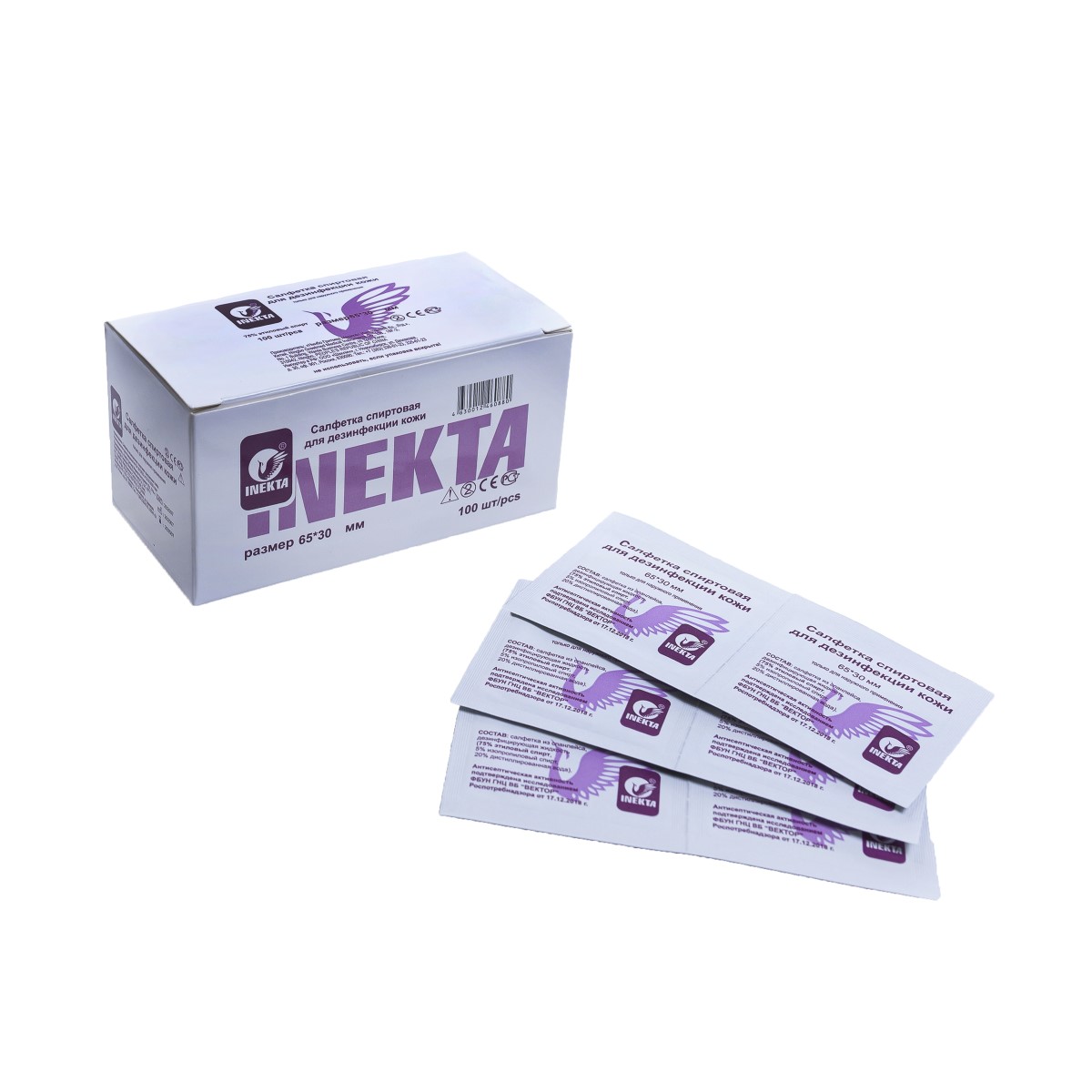 Салфетка спиртовая для инъекций 30*65 мм №100, Inekta